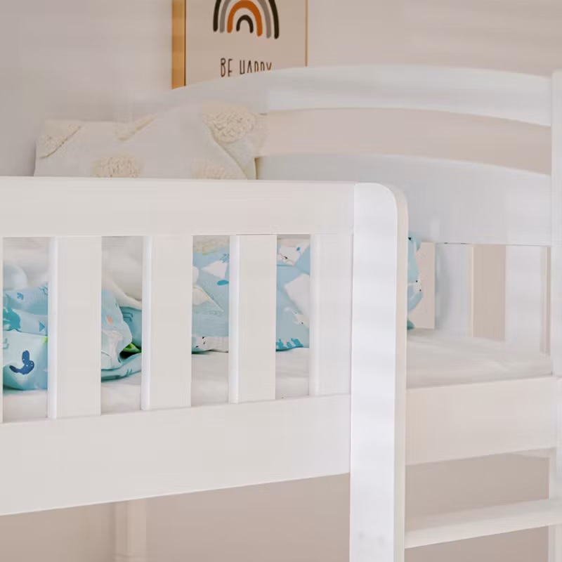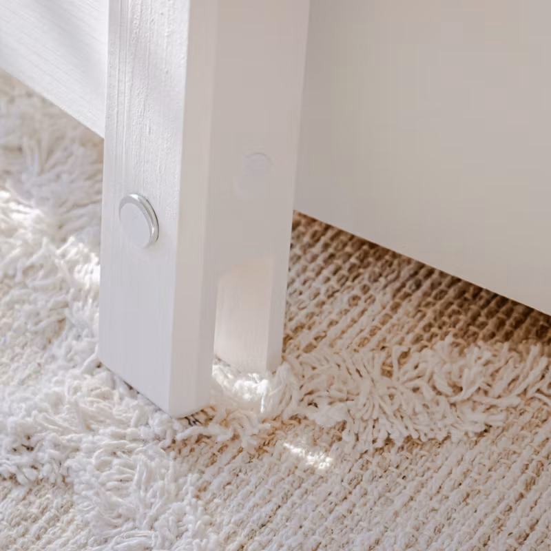 Sengene produseres i henhold til standarden EN-747-1: 2012 + A1: 2015 på vår fabrikk i Europa, som har de høyeste sikkerhetsstandardene for produksjon av barnesenger, og kontrollerer hvert trinn fra tømmeret kommer inn i fabrikken til et ferdig produkt forlater. Sengene blir lakkert tre ganger med økologisk, miljøvennlig og vannbasert maling som følger normen EN 71-3:2019.