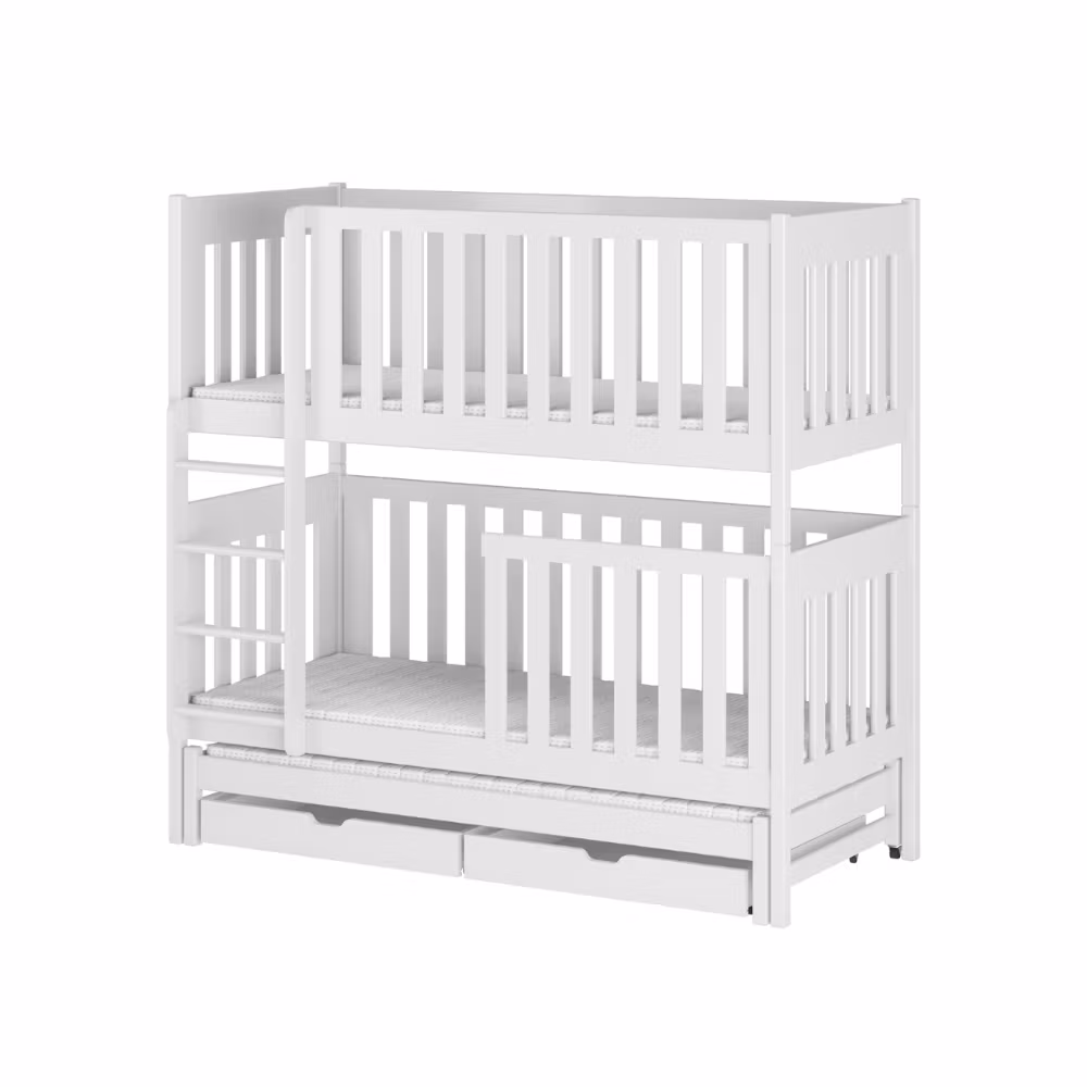 Sengene produseres i henhold til standarden EN-747-1: 2012 + A1: 2015 på vår fabrikk i Europa som oppfyller de høyeste sikkerhetsstandardene for produksjon av barnesenger. Vi kontrollerer hvert trinn fra tømmeret kommer inn på fabrikken til et ferdig produkt forlater. Sengene males tre ganger med økologisk, miljøvennlig og vannbasert maling i samsvar med normen EN 71-3:2019.