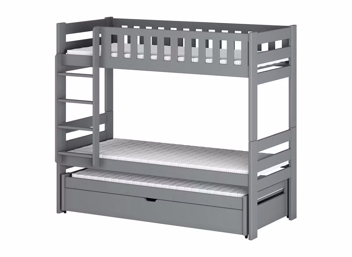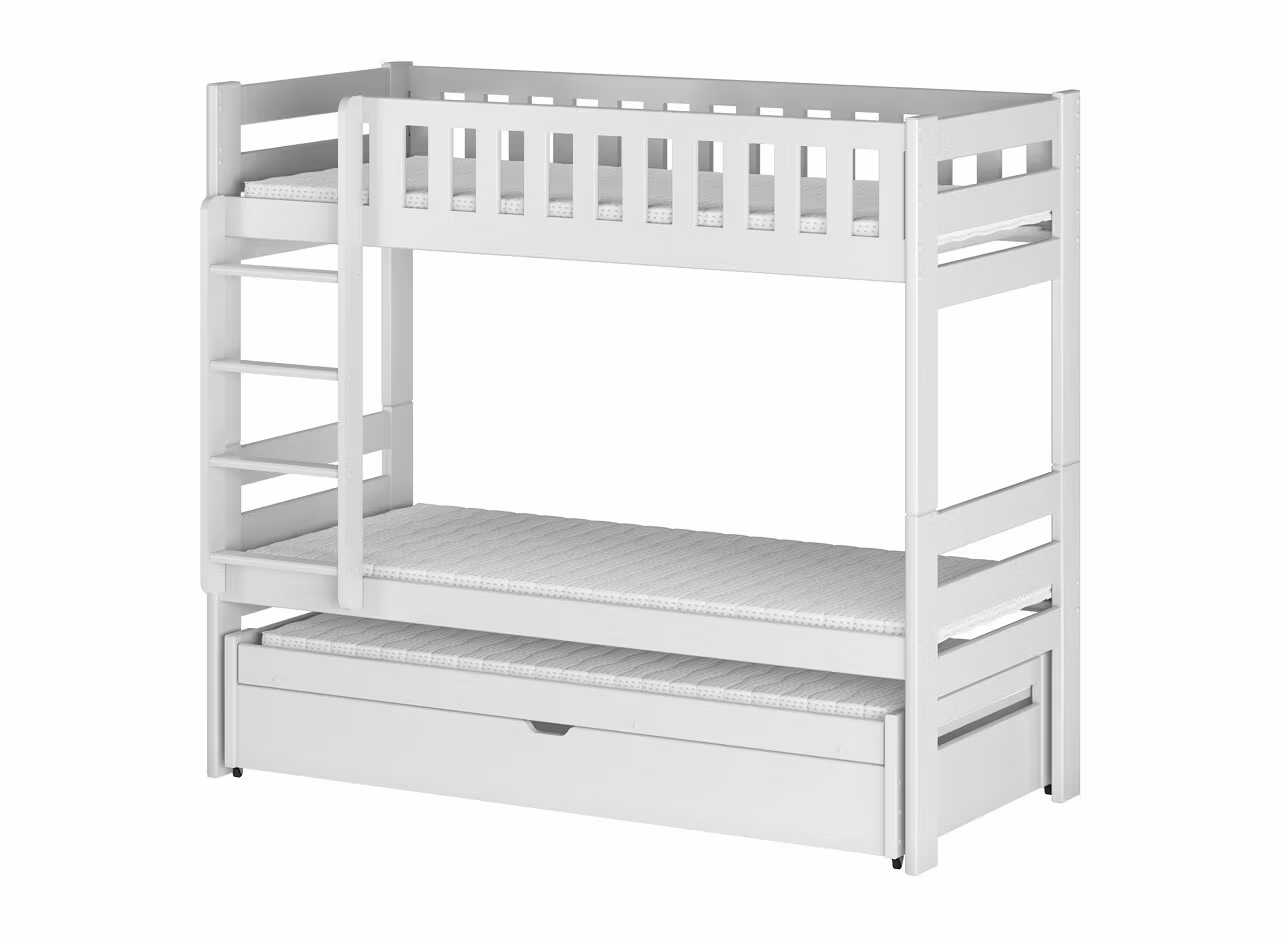 Madrasser følger ikke med, men kan kjøpes i vårt store utvalg! Vi anbefaler en skummadrass med en tykkelse på 10-12 cm for de øverste sengene og maks 8 cm for ekstrasengen. Hvis madrassen til ekstrasengen er tykkere enn 8 cm, vil ikke ekstrasengen kunne rulles ut.